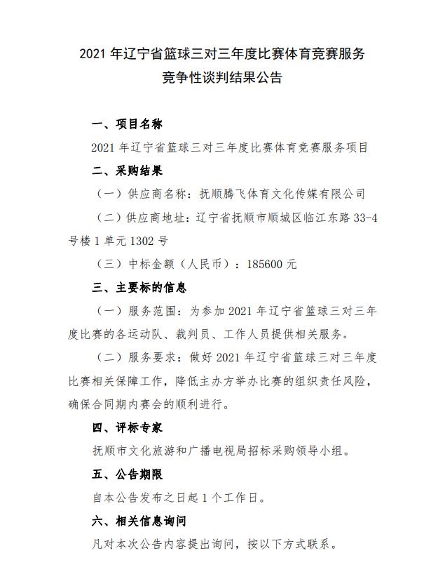 2021 年辽宁省篮球三对三年度比赛体育竞赛服务 竞争性谈判结果公告