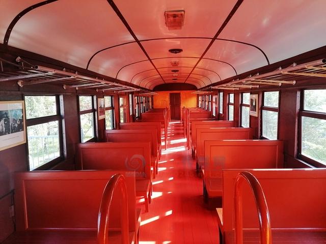这列长度约有60米的101号老电车,是抚矿集团的工业文物,差不多有86年的历史,至今保留了前后驾驶车头的原貌。车厢的脚踏板、门扶手、门锁、窗锁、照明灯、透气孔、行李架等也都保存完好。在暖色调的车厢内,还悬挂了20组电车历史图片,以及车票使用过程的演变、乘客须知、电车时刻表,从而让本地游客的怀旧感大大增强。加上大型设备陈列广场上展示的各类机车,使煤矿博物馆的展陈实物种类更加丰满和全面。